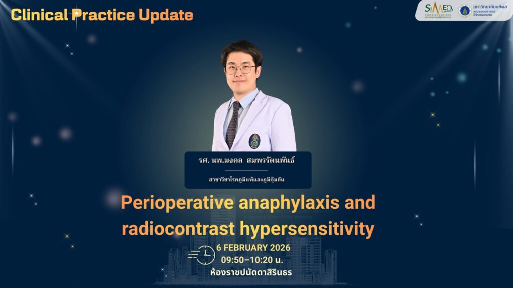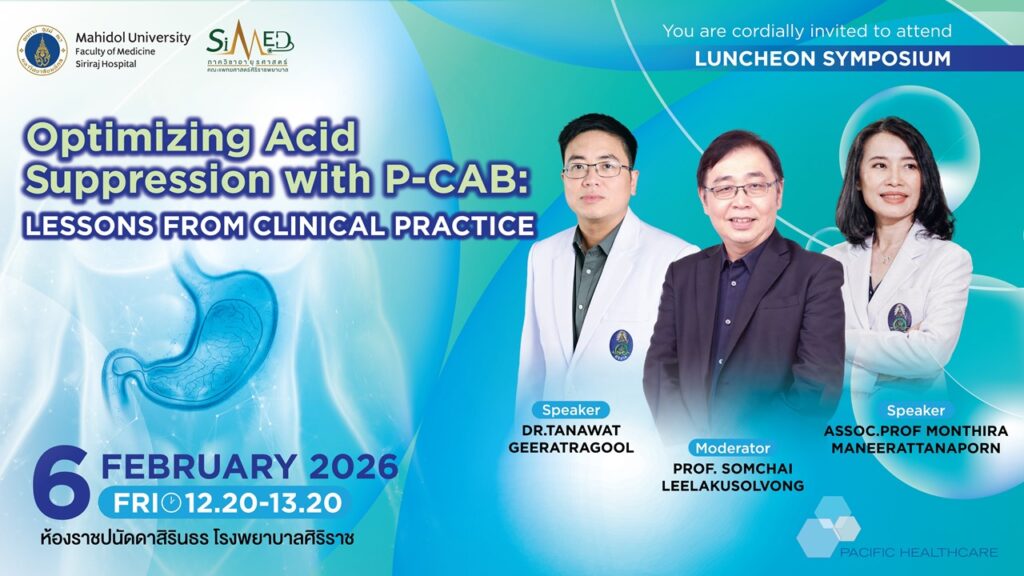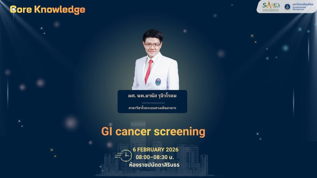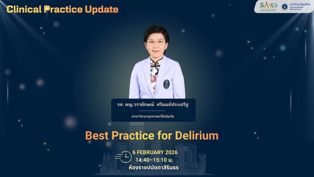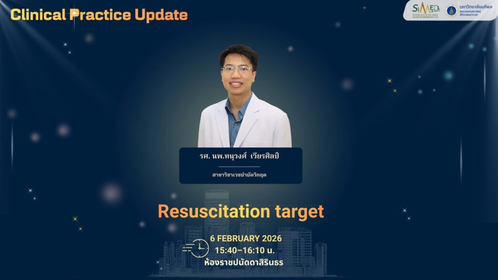 Siriraj Medicine Conference 2026: Evolving Standards, Smarter Care Handout * วิดีโอและเอกสารประกอบการบรรยาย (เฉพาะหัวข้อที่วิทยากรยินยอมให้เผยแพร่เท่านั้น) ** สำหรับท่านที่รับชมผ่าน Ipad/Tablet ให้วางอุปกรณ์ของท่านเป็นแนวตั้งจึงจะสามารถรับชมวิดีโอได้ วันที่ 6 ก.พ. 69 (ห้องราชปนัดดา) ห้องราชปนัดดา วันที่ 3 ก.พ. 69 วันที่ 4 ก.พ. 69 วันที่ 5 ก.พ. 69 วันที่ 6 ก.พ. 69 หัวข้อการประชุม คลิกเพื่อรับชมวิดีโอ คลิกเพื่อรับชมวิดีโอ คลิกเพื่อรับชมวิดีโอ คลิกเพื่อรับชมวิดีโอ คลิกเพื่อรับชมวิดีโอ Views: 216