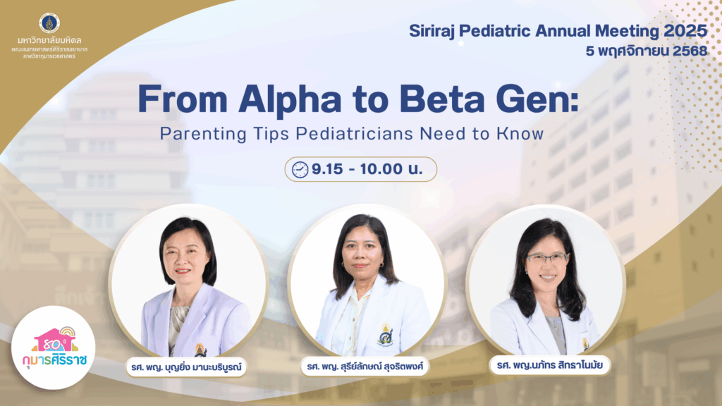 Siriraj Pediatric Annual Meeting 2025 5 พ.ย. 68 6 พ.ย. 68 7 พ.ย. 68 คำถามสำหรับงานประชุมวิชาการประจำปี 2567(วันที่ 13 พ.ย. 2567) แบบประเมินสำหรับ vdo-ondemand *สำหรับท่านที่รับชมผ่าน Ipad/Tablet ให้วางอุปกรณ์ของท่านเป็นแนวตั้งจึงจะสามารถรับชมวิดีโอได้ วันที่ 5 พ.ย. 68 หัวข้อการประชุม คลิกเพื่อรับชมวิดีโอ Hand out อ.บุญยิ่ง Hand out อ.สุรีย์ลักษณ์ คลิกเพื่อรับชมวิดีโอ Hand out คลิกเพื่อรับชมวิดีโอ คลิกเพื่อรับชมวิดีโอ Hand out คลิกเพื่อรับชมวิดีโอ Hand out คลิกเพื่อรับชมวิดีโอ Hand out Views: 154